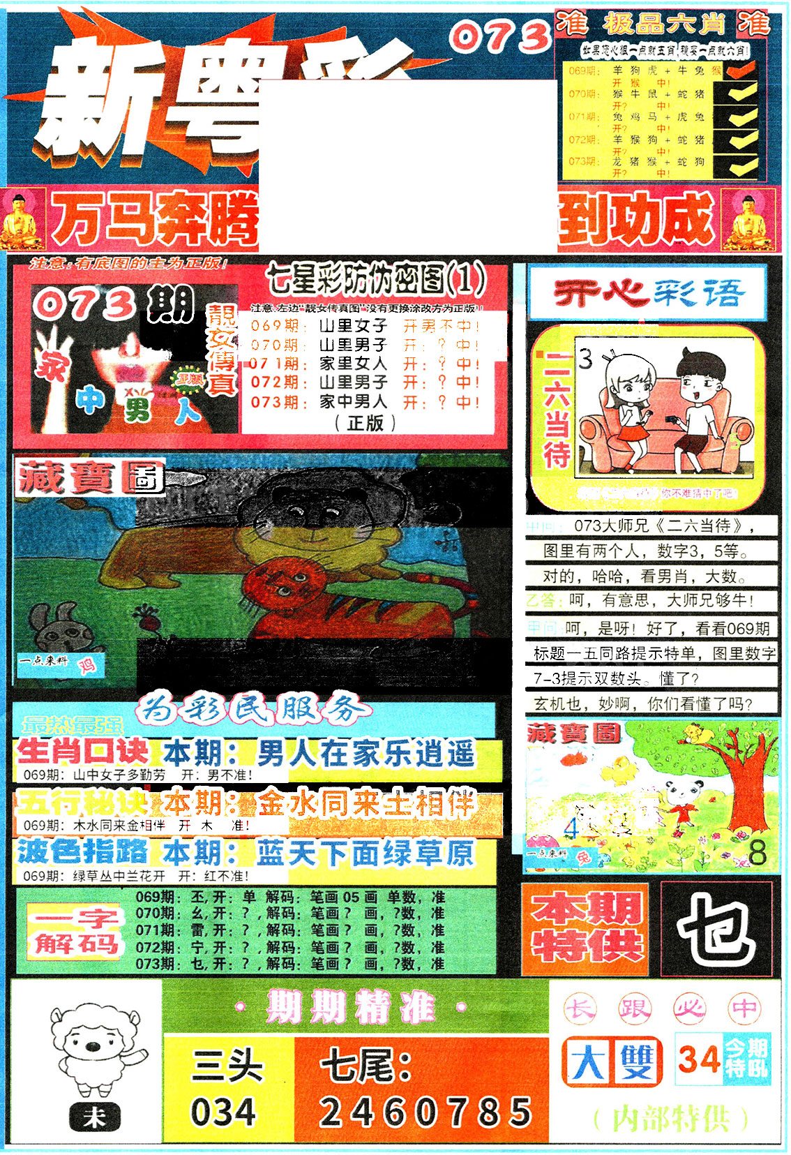 073期:彩民推荐:≮新粤彩≯→(博彩必备)