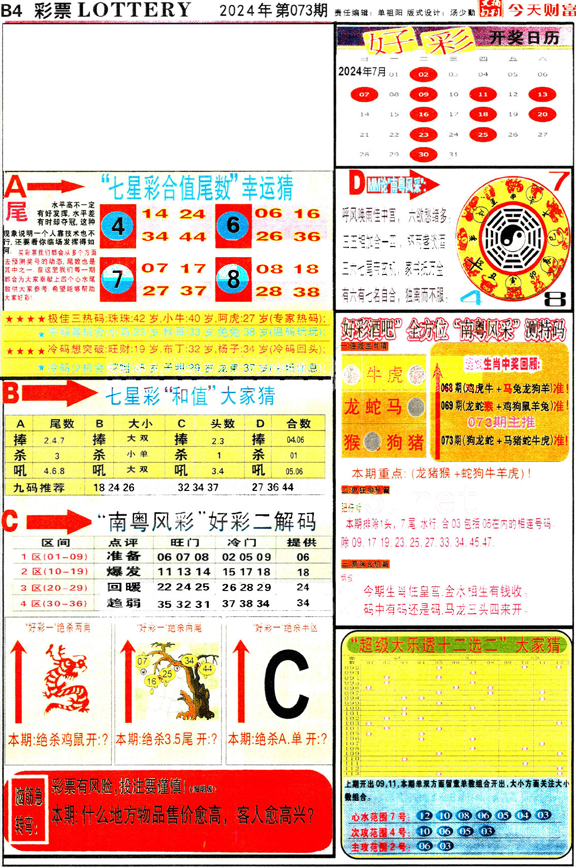 073期:彩民推荐:≮财富赢家≯→(七星彩)