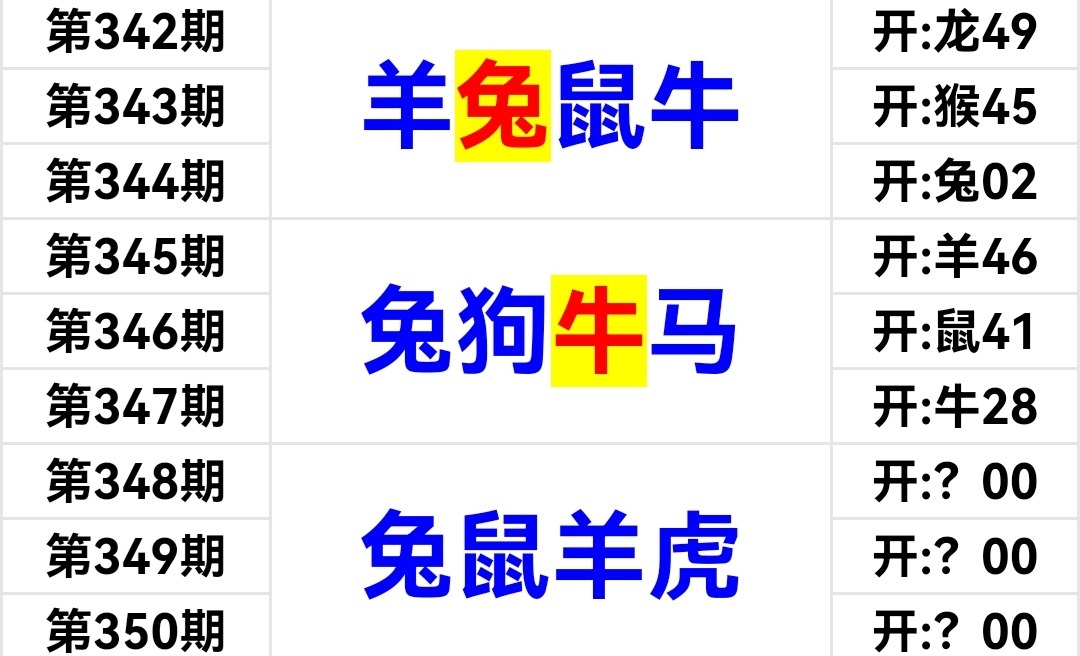 三连:兔虎蛇(马猪牛龙)