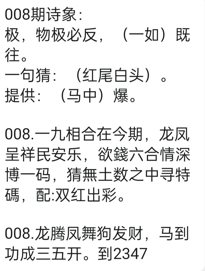 诗象已经烂,没有参考价值。我主要看你2和4的玄机。还请期期发表,我给我抓的平特肖给你参考,连肖还是利润很高的。