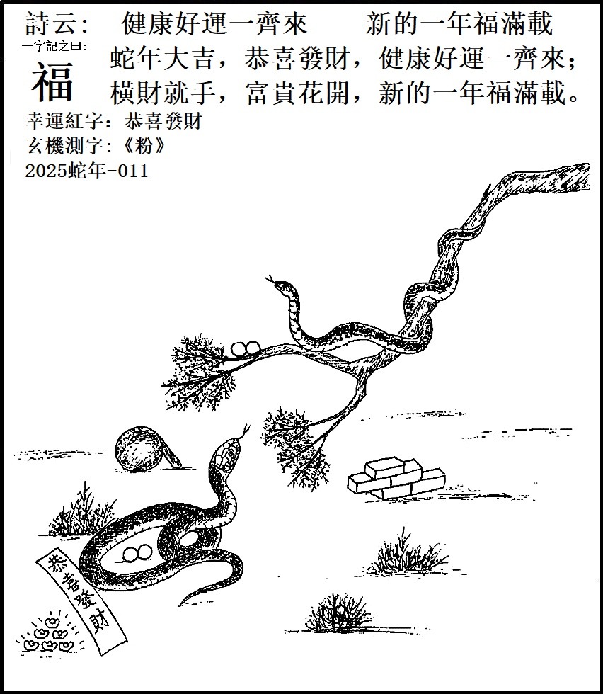 蛇年大吉,恭喜發財,健康好運一齊來;