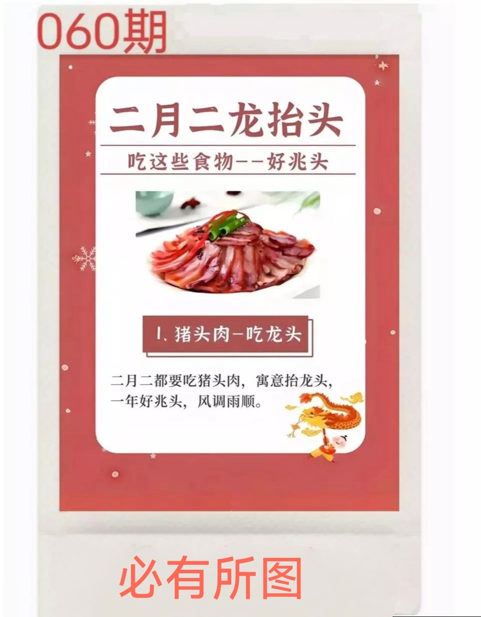 二月二龙蛇,吃肉野兽肖。龙抬头又是春耕节。干农活的牛。好兆头吉美肖