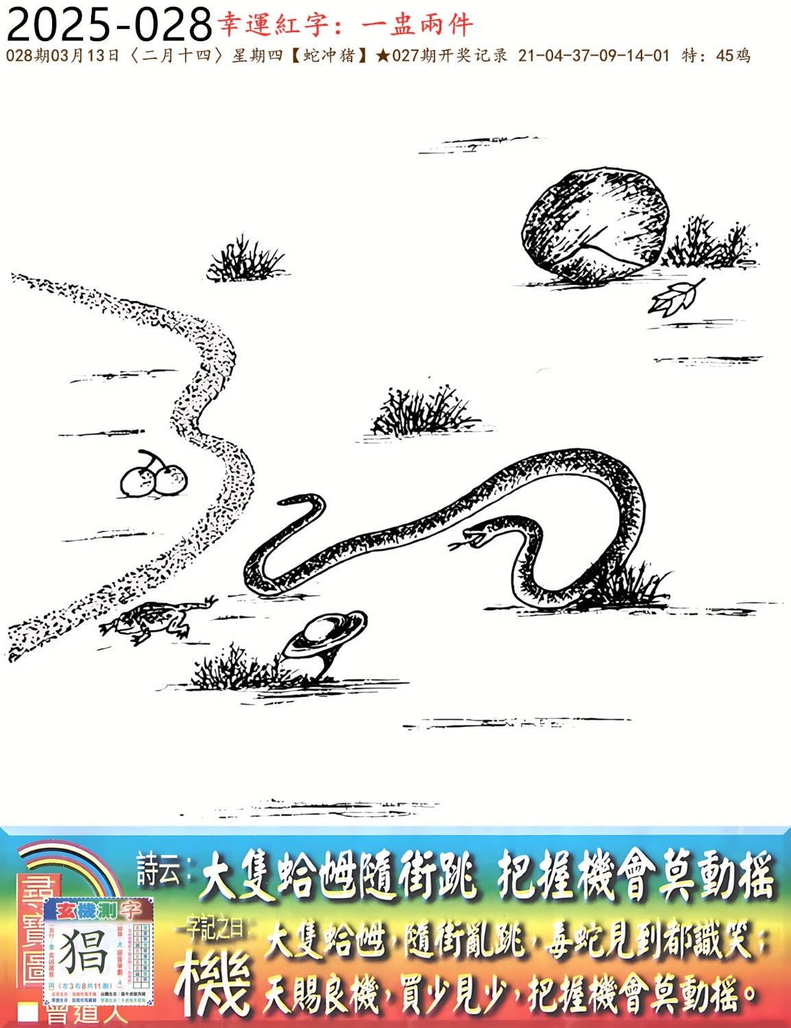 028期火车头:烧伤马。诗:猪年好运,虎头蛇尾防三八。