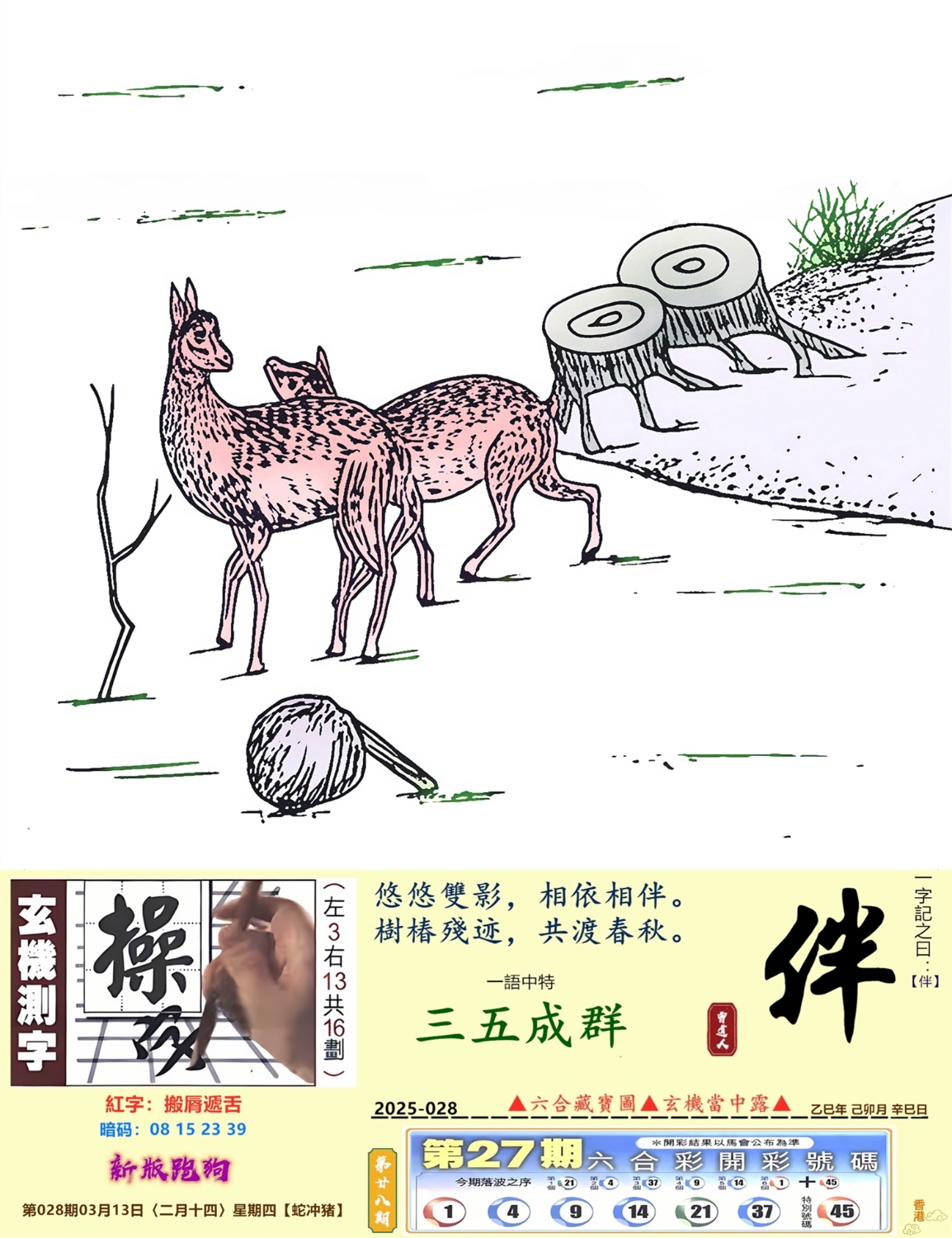 028期香港第一手欲钱料:欲钱找梅花鹿的动物。