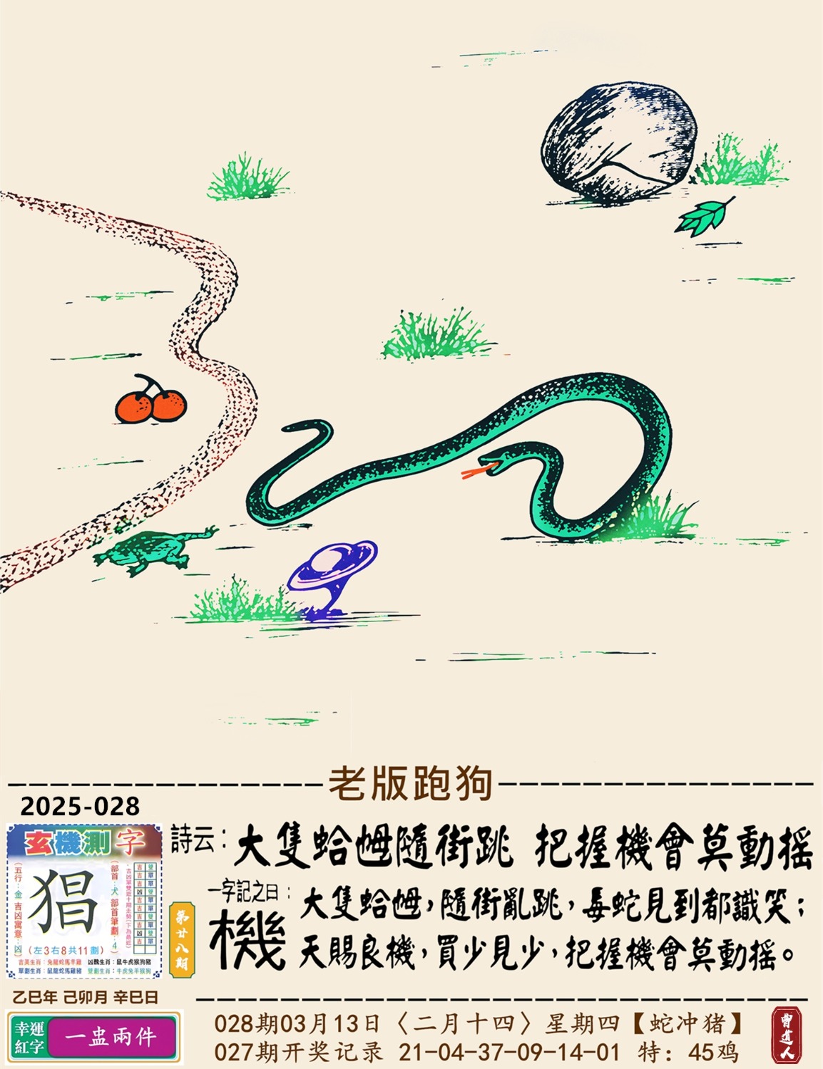 028期:老版跑狗玄機一字記之曰:【機】