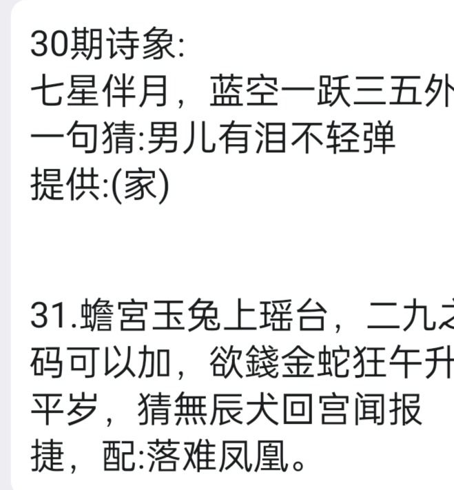 30.七步成诗真天子,红蓝特码送一彩民,欲錢六合到来人心喜,猜無风吹草动牛马羊,配:小数中,