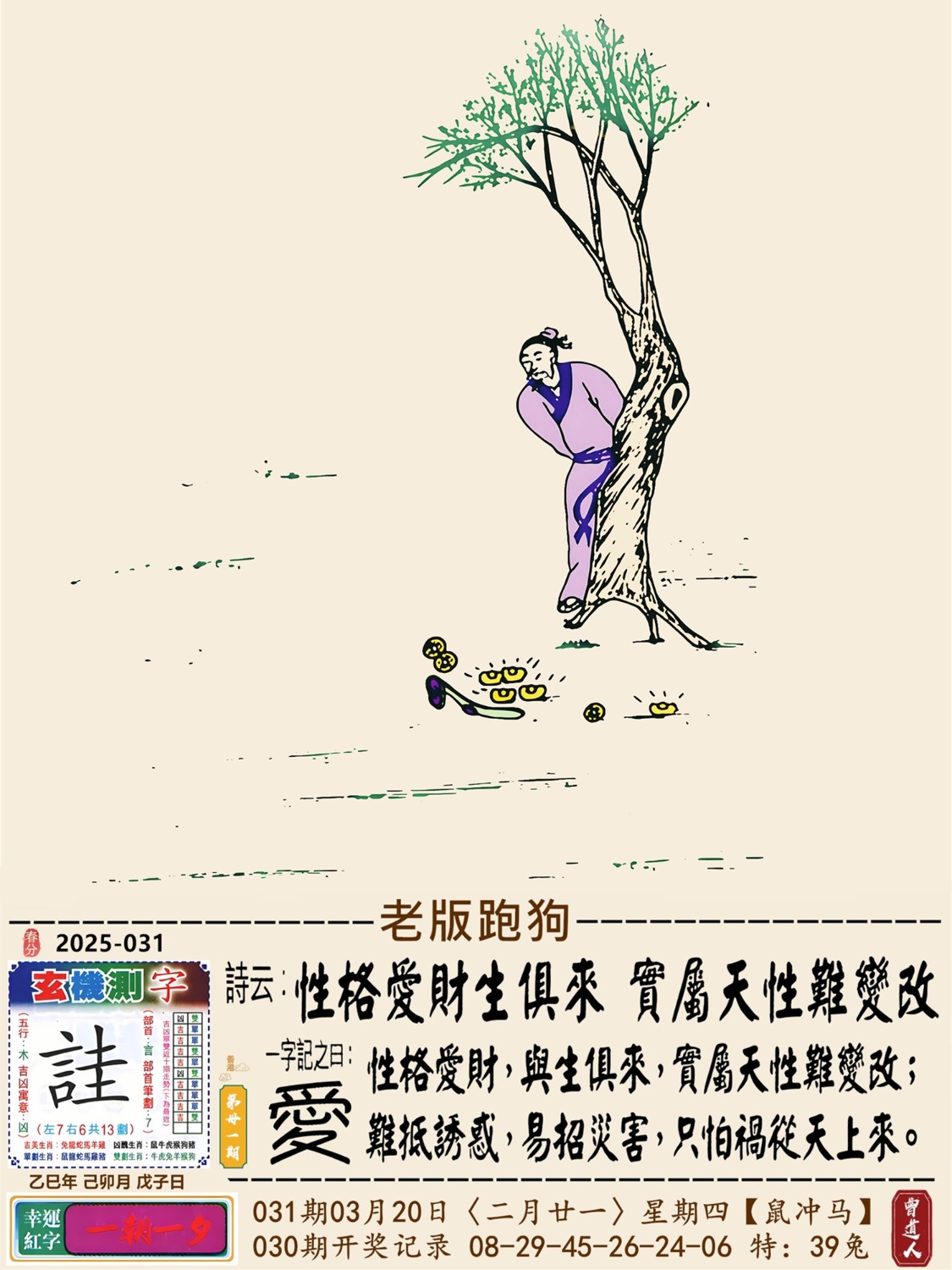 詩云:性格愛財生俱來 實屬天性難變改