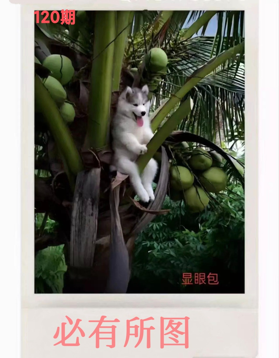 图中一只狗在椰子树的树杈上,椰子树生长在热带地区,看夏肖蛇马羊,显眼包就那只狗,狗是不会上树的,蛇羊能上树,马不能,狗=9.看马的36合9数。